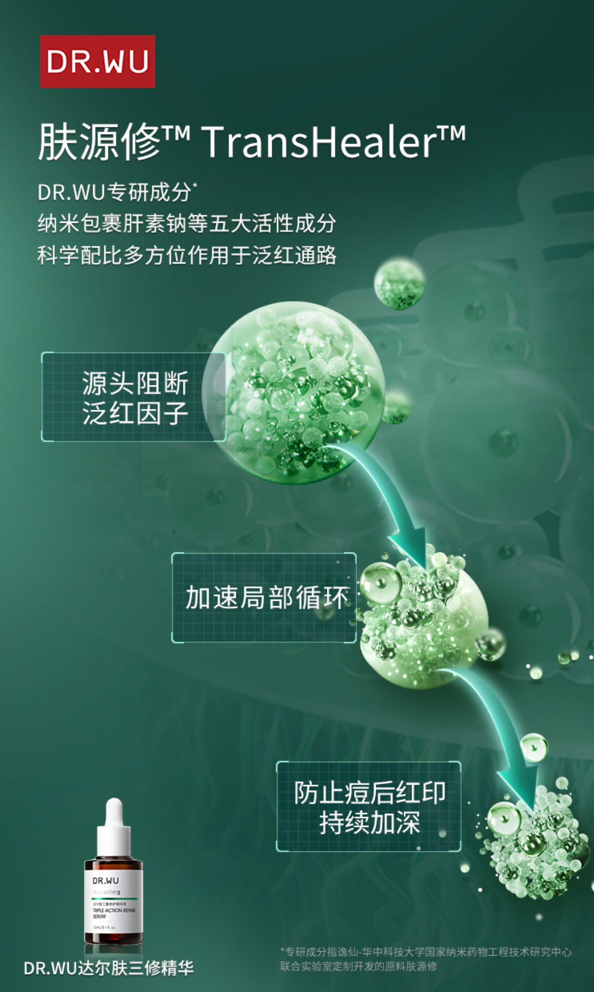 2022年6月,逸仙电商研发中心正式获得中国合格评定国家认可委员会(简称CNAS)出具的实验室认可证书,成为化妆品行业内为数不多获得该项认证的检测实验室之一。逸仙电商联合国家纳米药物工程技术研究中心联合实验室开发的“靶向修红科技”和专研修护成分“肤源修TransHealer”,继在DR.WU达尔肤三修精华上得到验证之后,又应用于新品三修水乳上。