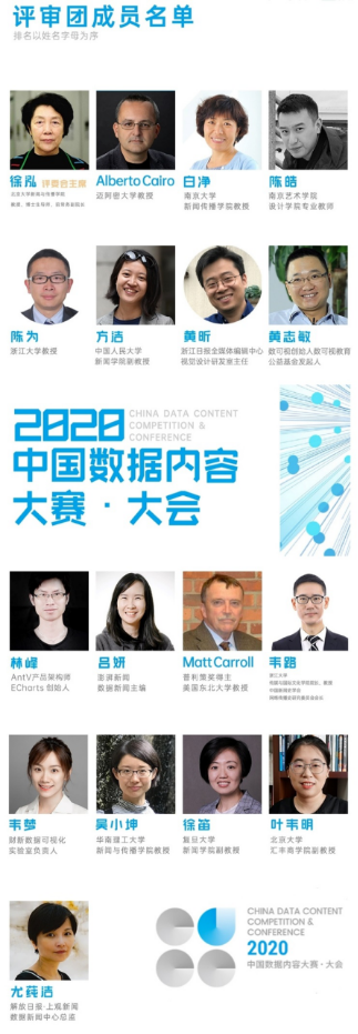 由中国新闻史学会网络传播史研究委员会提供学术指导,由浙江大学传媒与国际文化学院、数可视教育公益基金联合主办“2020中国数据内容大赛”已经开启作品征集,本次大赛邀请北京大学新闻与传播学院教授、博士生导师、前常务副院长徐泓老师出任大赛评委会主席,并由国内外16位在数据内容制作领域的知名学者和资深从业者担任评审。