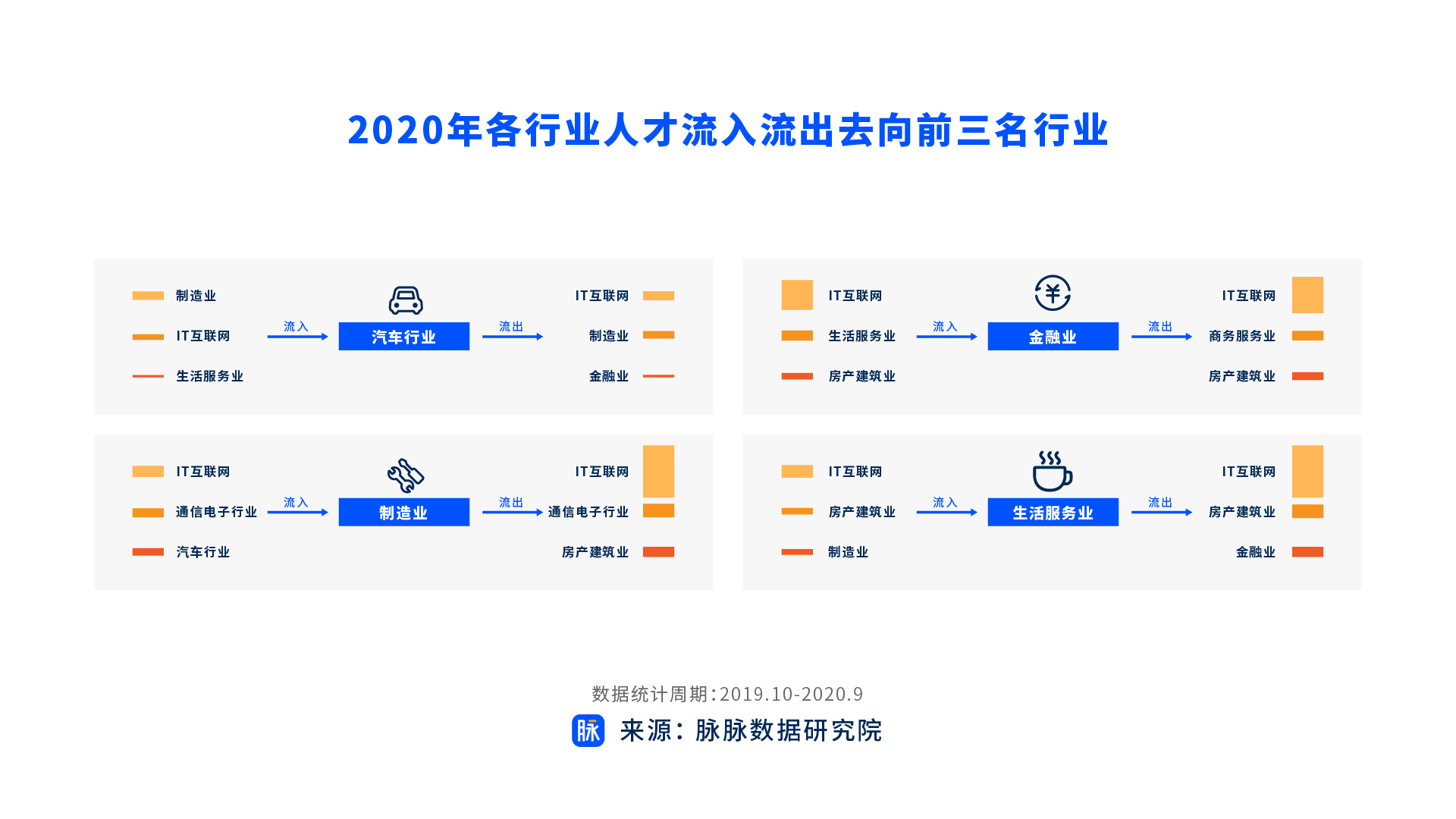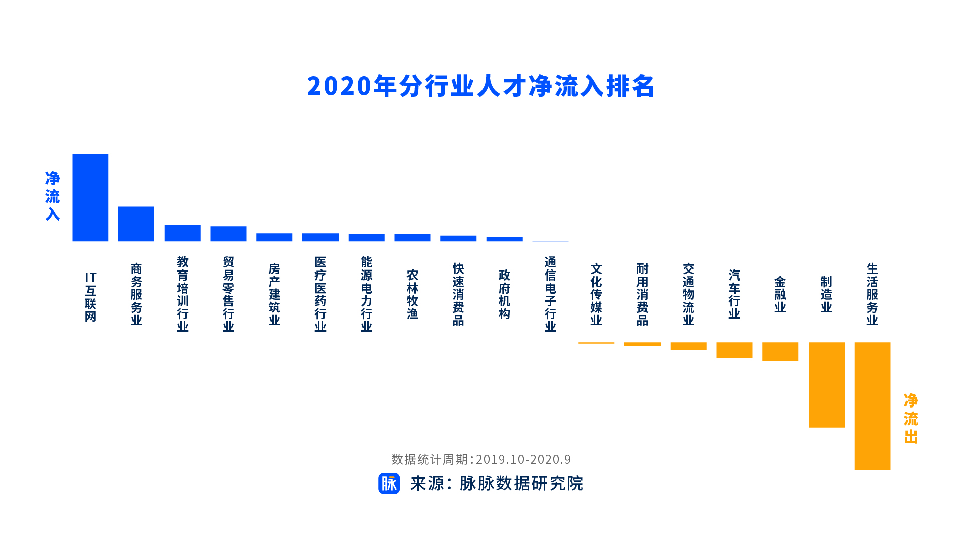 编辑:马璐璐 设计:脉脉数据研究院 2020-12-22 11:20:46 来源: 新华网最新发布的脉脉《人才吸引力报告2020》报告显示,IT互联网行业仍是最大人才流入行业,深圳成为年度人才净流入最多城市。