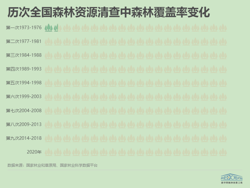从1973年到2020年,47年时间里,我国的森林覆盖率从12.7%增长到23.04%,几乎增长了一倍。