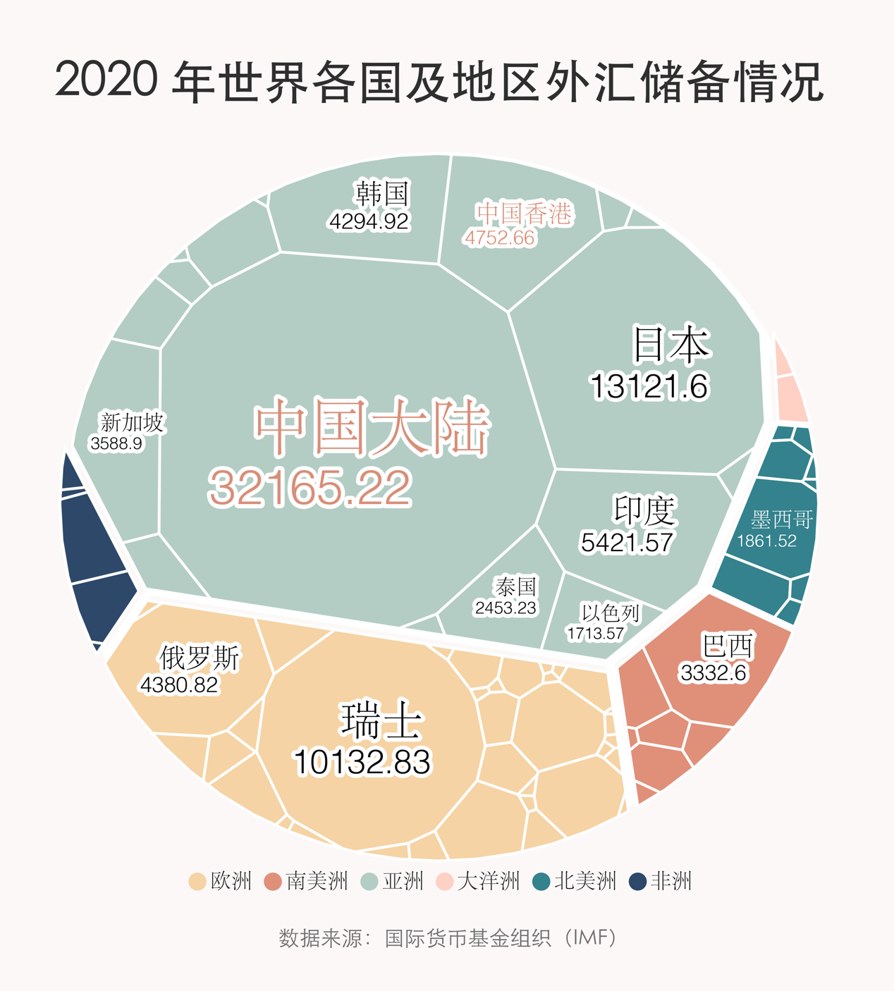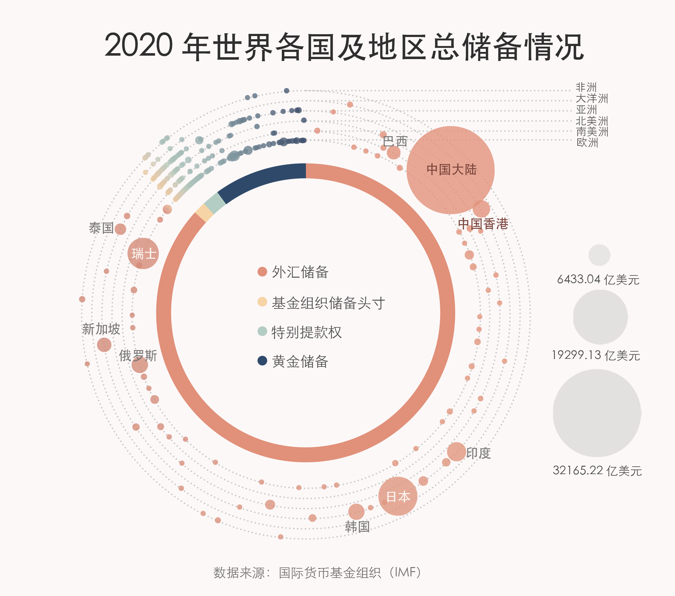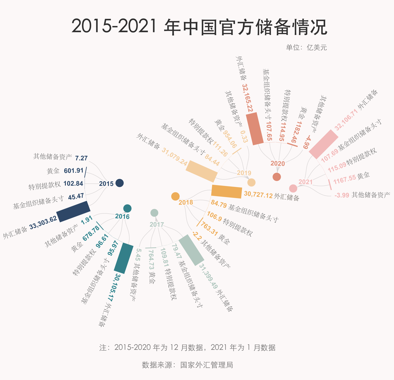 伴随着中国经济的发展与腾飞,中国外汇储备不断创造辉煌。据国家外汇管理局最新数据,截至2021年1月末,中国外汇储备规模已达32106.71亿美元,占总储备的95.86%。