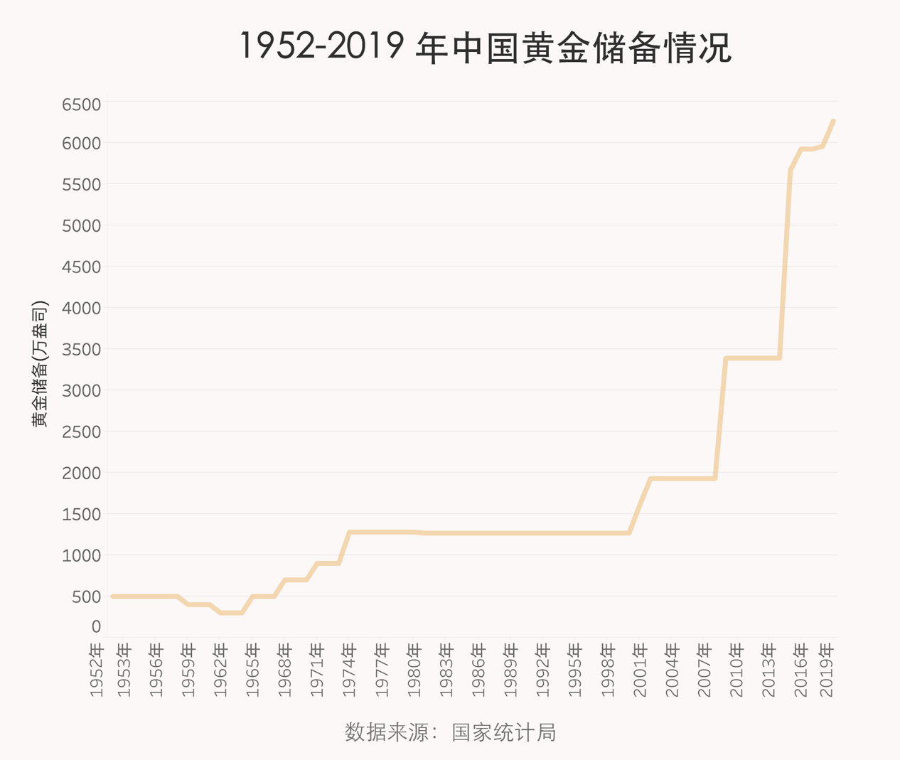 黄金储备作为国际储备的一个重要组成部分,各个国家都把它作为调节和优化国际储备组合的重要品种。1953年,我国的黄金储备仅有500盎司,近70年时间里黄金储备增长约12.5倍。黄金储备占储备资产总值的比例也由2015年6月份的1.7%,上升至现在的3.5%左右。