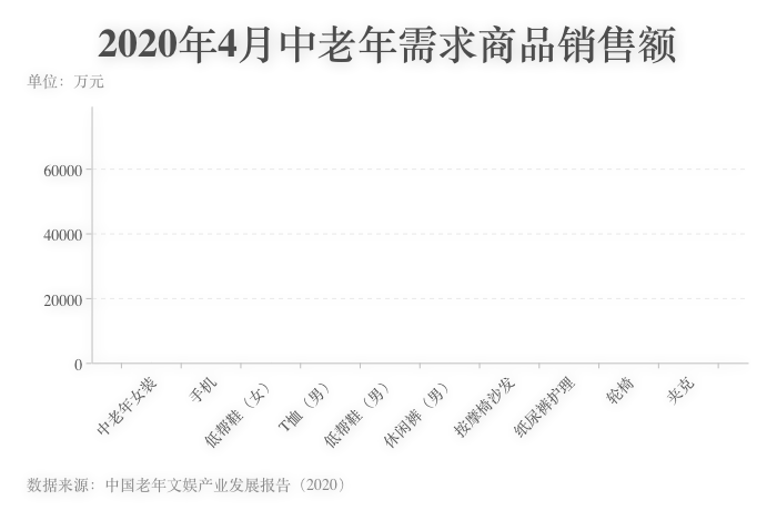 艾瑞数据显示,2020年4月,销售额排名前三的中老年需求商品中,2类商品为女性消费品,其中中老年女装的销售额是排名第二的手机的2倍,反映了中老年女性比男性具有更强的消费需求。