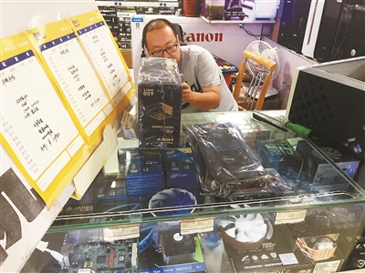 朝外百脑汇一家商户在展示新到货的显卡 图片来源:北京青年报