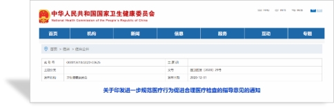 《关于进一步规范医疗行为促进合理医疗检查的指导意见》