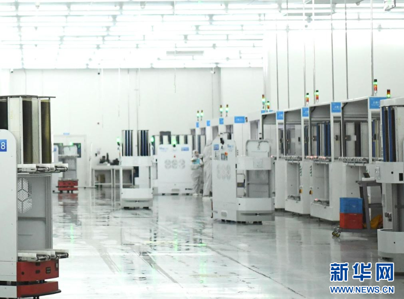6月4日,在天合光能股份有限公司江苏淮安基地,运输机器人在车间忙碌作业。新华社记者 柳文惠 摄