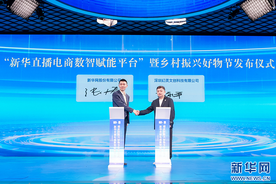 新华炫闻(北京)移动传媒科技有限公司常务副总裁、新华网数字经济事业中心负责人张涛与深圳幻灵文创科技有限公司CEO李永平签约。