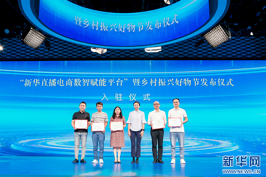 现场由中国电商乡村振兴联盟主席李晓林为首农集团、海南省旅游投资集团、夏商集团、鲁商集团、北京龙顺成中式家具、北京星汉云图、北京普乐普等企业代表颁发入驻证书。新华网发