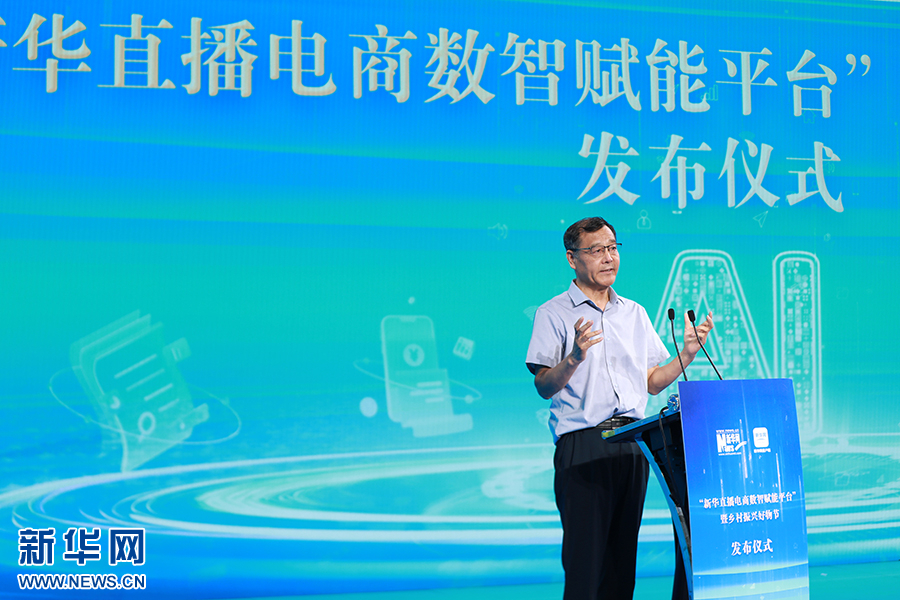 现场由新华网党委书记、董事长储学军,中国贸促会原副会长、中国服务贸易协会会长张伟,商务部电子商务和信息化司副司长王鹏飞,商务部流通产业促进中心副主任武传亮,中国网络社会组织联合会副秘书长张勇,中华职业教育社副总干事、党组成员李英爱,农业农村部信息中心副主任张国庆,《中国消费者》杂志社书记刘福林共同启动发布“新华直播电商数智赋能平台”。新华网发