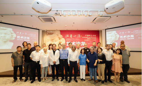 艺术沙龙部分嘉宾合影,前排左七为吴为山,左八为严茉莉。