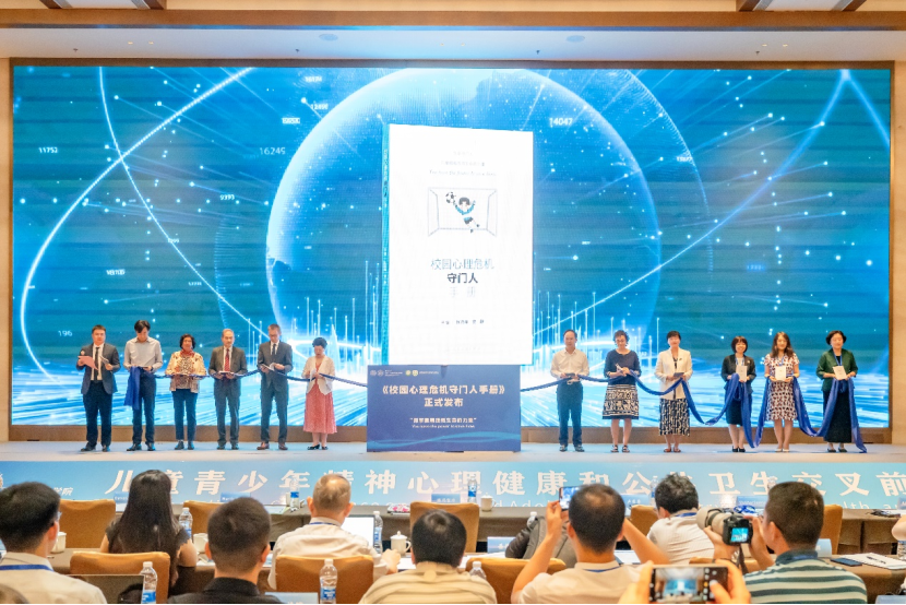 大会开幕式上,由人民卫生出版社出版的《校园心理危机守门人手册》正式发布。世界卫生组织荣誉总干事、清华大学万科公共卫生与健康学院创始院长陈冯富珍、世界卫生组织驻华代表Martin Taylor,世界卫生组织精神卫生、脑健康与物质滥用司司长Devora Kestel、国家心理健康和精神卫生防治中心党委副书记姜雯、人民卫生出版社医学学术编辑中心主任曲春晓、广东省云浮市委书记卢荣春、国家卫生健康委妇幼健康中心主任郑睿敏、世界卫生组织精神卫生、脑健康与物质滥用司前司长、哈佛大学公共卫生学院教授Shekhar Saxena、日内瓦大学教授、世界卫生组织研究伦理委员会官员Abha Saxena,北京大学第六医院急诊医学科主任西英俊共同参与发布仪式。