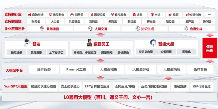 会上,正式发布用友企业服务大模型YonGPT 2.0。YonGPT 2.0将“繁杂企业应用需求”与“通用大模型”的鸿沟连接起来,是深懂企业服务的垂类大模型,成为企业AI应用新引擎。目前,基于YonGPT 2.0,用友BIP拥有分别基于智能体(Agent)、人机交互(HCI)、RAG应用框架的“智友”“数智员工”“智能大搜”3项重要产品,以及包括智能合同、智能订单生成、智能月结、AI面试、智能人才发现等100多个场景化的企业智能服务。