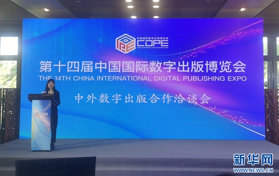 学术中国市场推广负责人黄嘉在中外数字出版合作交流洽谈会现场发言。 阴晓鹏摄