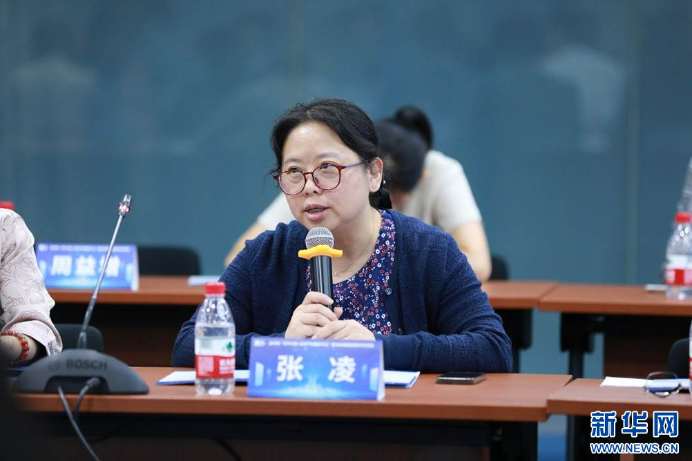 中国协和医科大学出版社有限公司总经理兼总编辑张凌交流发言。新华网 陈延特摄