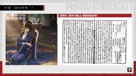 率土之滨工作室游戏策划以“‘人物考’对《率土之滨》游戏设计的重大意义”为题,进行了精彩分享。他指出,“回归原典,再出发”是本次合作的核心主题。所谓“原典”,涵盖了与汉末、三国历史文化相关的所有一手史料、典籍文献、原始素材,以及后世的文艺创作成果。