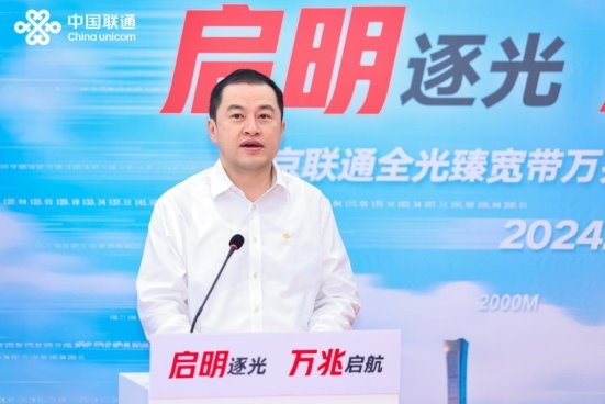 北京市通信管理局党组书记、局长苏少林在致辞中肯定了北京联通在推动信息化建设方面做出的贡献。他指出,北京信息通信行业坚持以习近平新时代中国特色社会主义思想为指导,坚定不移地强化新型工业化的数字基石。北京市为建成“光网之都,万兆之城”,计划通过三年时间,率先开展一系列F5G-A万兆光网技术创新与应用试点,推动网络升级、深化应用普及、提升用户感知。北京联通在一年的时间里完成了平谷村播基地的揭牌,完成50G PON万兆体验测评,今天又打造了“北京联通全光臻宽带-万兆体验空间”,稳步推动北京成为以万兆光网为目标的网络能力领先、创新应用领先、前沿示范领先的“全光万兆”样板城市,更好地服务人民群众美好信息生活,服务北京数字经济发展。