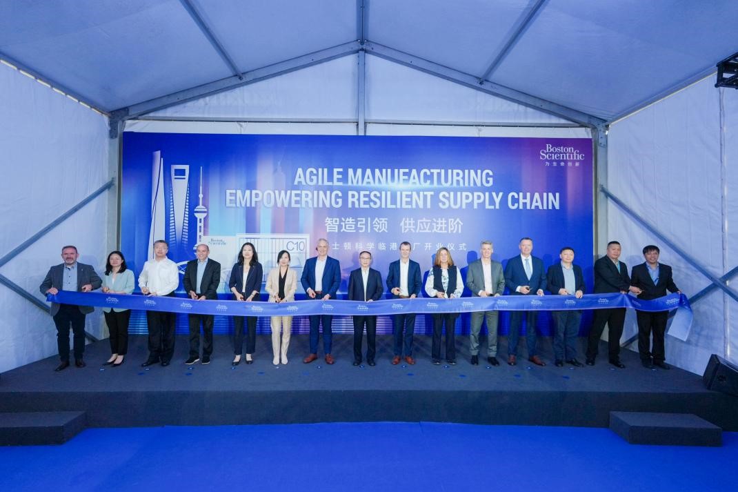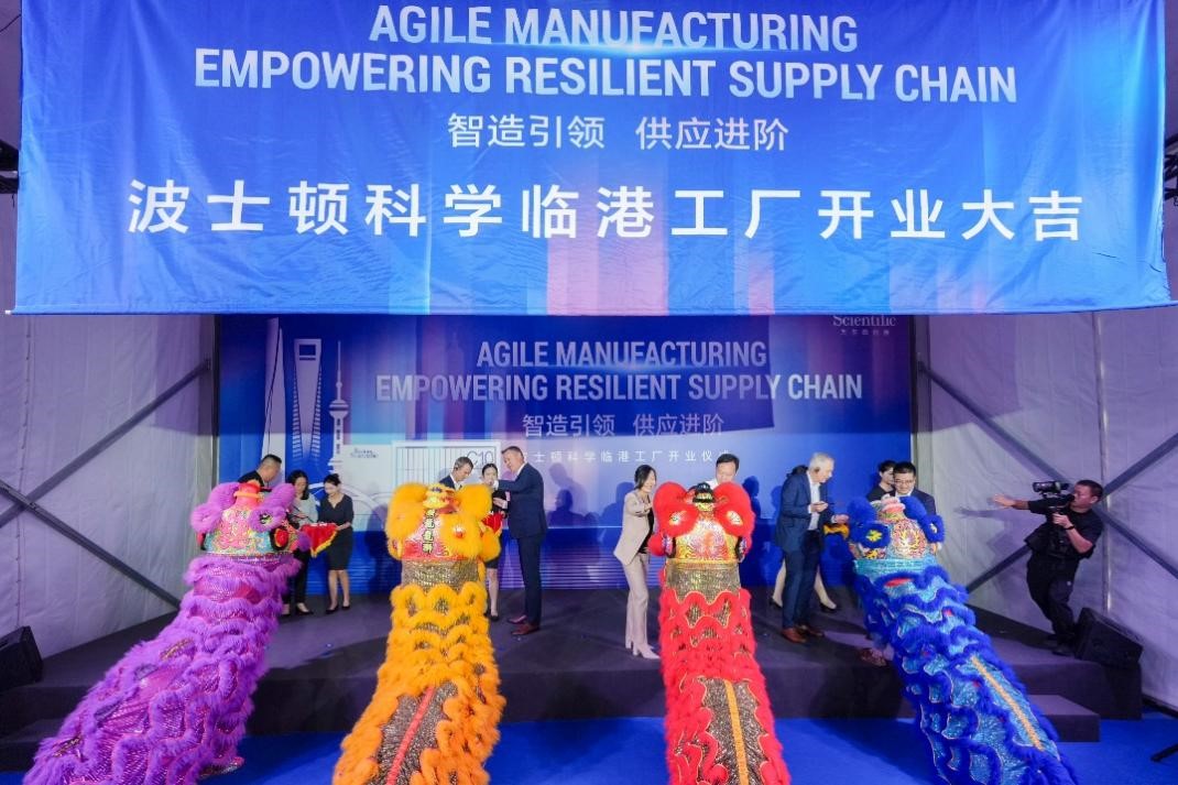 临港新片区、上海市药监局、上海市科委、奉贤区税务局、洋山海关、临港集团领导嘉宾,以及波士顿科学管理层代表为波士顿科学临港工厂开业剪彩