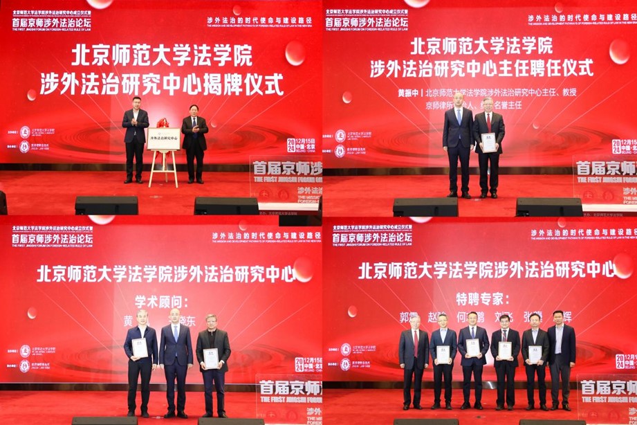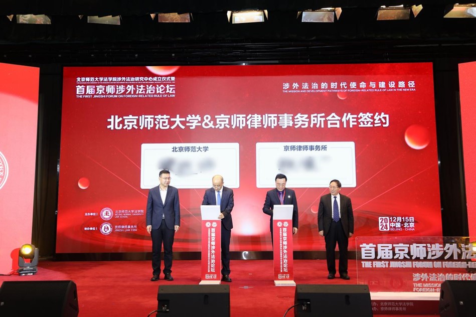 12月15日,北京师范大学法学院涉外法治研究中心成立仪式暨首届京师涉外法治论坛在北京隆重举行。此次论坛的主题为“涉外法治的时代使命与建设路径”,旨在更好适应我国涉外法治建设快速发展的现实,满足涉外法治实践对高质量法学研究的需求。研究中心成立仪式暨论坛由北京师范大学法学院主办,北京市京师律师事务所协办。来自国家机关、学术界和实务界的三百多位专家学者与会,围绕涉外法治的时代使命与建设路径、涉外法治实践中的前沿问题和涉外法治人才的培养机制等问题展开深入讨论。