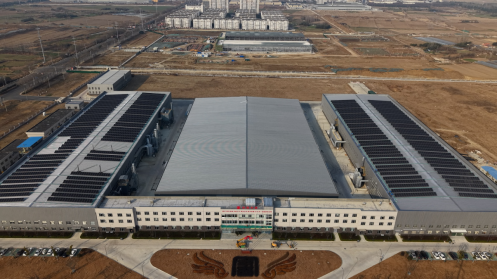 厂房屋顶安装了大面积的太阳能光伏板,为工厂提供了清洁的电力来源