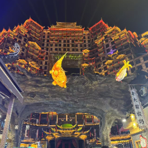 夜幕降临,华灯初上,每晚30余场演出在被誉为“张家界文化地标”和“夜经济新引擎”的七十二奇楼上演。该景区通过民俗表演、非遗体验等多种休闲业态吸引了大批市民和游客,夜经济火爆。