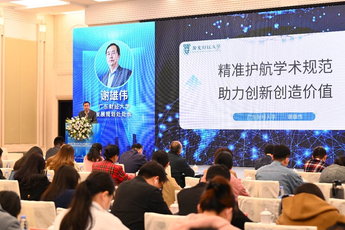 广东财经大学发展规划处处长、教授谢雄伟在主题演讲中介绍,如今人工智能、大数据等新兴技术正在重塑全球科研生态,我国在全球论文发布的数量、质量同步提升的同时,也催生因技术滥用造成的学术不端问题,严重影响我国国际学术形象和侵蚀科研创新根基。他提到,去年教育部要求各高校开展撤稿论文自查工作。在这样的背景下,学术治理手段必须紧跟最新技术发展步伐。“此次我们对‘学术中国’平台进行了测试体验,其全量及实时更新的文献数据资源库,较目前市面上其他平台的检测系统更为准确且报告更加详细。”谢雄伟表示,科研工作需拥抱技术红利,善用专业工具为创新创造赋能。