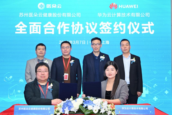 3月7日,苏州医朵云健康股份有限公司(以下简称“医朵云”)与华为云计算技术有限公司(以下简称“华为云”)在华为练秋湖研发中心正式签署全面合作协议。双方将围绕智慧医疗、临床科研、患者服务及药企数智化赋能等领域展开深度合作,通过技术创新与生态协同,共同推动医疗健康行业向数字化、智能化迈进。医朵云董事长兼总经理谷可军、医朵云董事冯永虎、华为云大数据与人工智能领域总裁尤鹏、医朵云CTO吴源远等领导出席签约仪式。