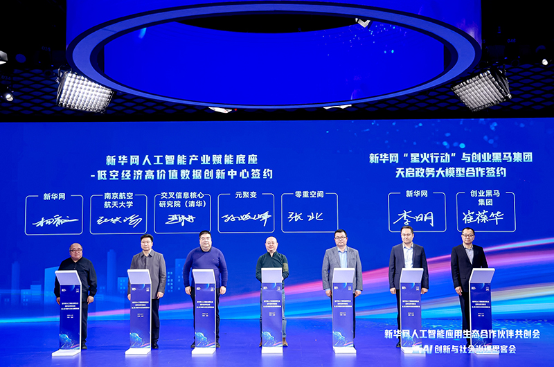 此外,新华网“星火行动”与创业黑马集团进行了天启政务大模型签约。双方将以天启大模型为基础,通过新华网政务资源与创业黑马技术优势深度结合,打造标准化AI赋能平台。通过应用推广、试点示范、联合培训、行业标准制定等模式,构建“技术研发-场景验证-规模推广”全链条合作机制,加速政府治理数字化升级,为全国智慧政务建设提供创新范式。