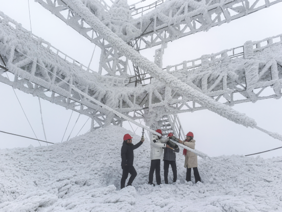 国网经济技术研究院工作人员正在对线路覆冰进行取样实验