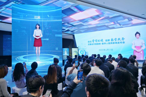 4月11日,无锡市“优化营商环境,创新数字政务:无锡全天候服务·数字人矩阵”新闻发布会在无锡数据集团举行。除现场问答环节外,本次发布会由无锡政务发布平台形象数字人“欢曦”主持,集中展示无锡利用数字人技术在更广领域实现更优质、更高效服务的创新实践。