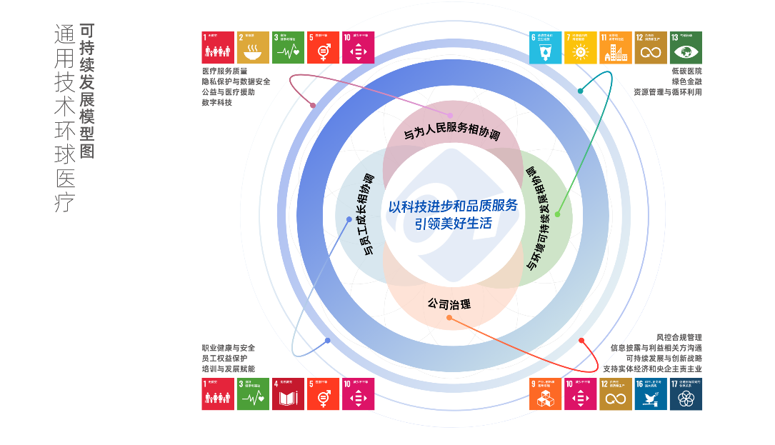 2024年,环球医疗将董事会下属战略委员会正式更名为战略与ESG委员会,首次制定了公司级ESG战略体系,标志着ESG建设迈入了战略驱动的更高阶段。围绕“以科技进步和品质服务引领美好生活”的企业使命,环球医疗通过将ESG理念融入公司战略运营与管理体系中,打造可持续的公司治理,努力实现企业发展与为人民服务相协调、与员工成长相协调、与环境可持续发展相协调,及与利益相关方共赢。