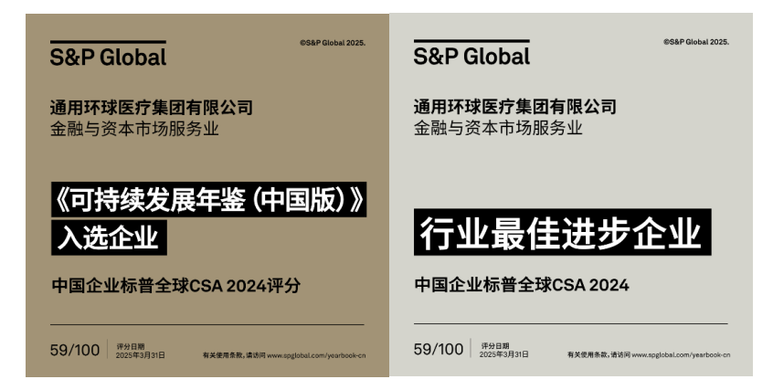 2024年,环球医疗再次入选央视“中国ESG上市公司先锋100”榜单,位列第63位;公司的标普全球ESG得分大幅提升至61分,位居国内细分行业第一名(全球前10%)。近日,环球医疗成功入选标普全球《可持续发展年鉴(中国版)2025》,并获得“行业最佳进步企业”表彰。这些成绩标志着公司在可持续发展领域的长期投入和显著成效获得了国内外权威机构的高度认可。