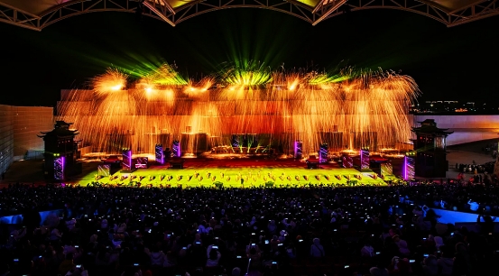 世界吉尼斯纪录全球最大规模打铁花表演,每晚为游客定制专属“与铁花合影”祈福环节;“全天候演出+沉浸式体验”串联景区“3+200”演出、美食、游乐等项目,游客凭互动任务卡,可免费品尝12种非遗小吃、特色美食;游客与NPC互动,可随机领取“银票”兑换惊喜礼品。