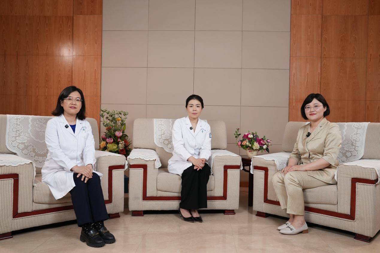天津医科大学第二医院副院长孙蓓教授(中)及内分泌科主任陈雨教授(左)接受新华网采访