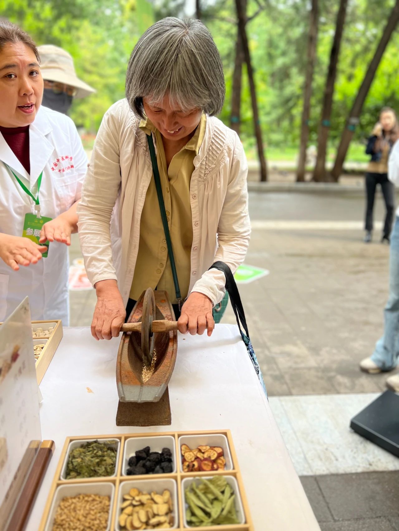 在非遗现场展区,中医门诊部展示了中医生命与疾病认知方法、中医诊法、中药炮制技术三个非遗项目以及曹洪欣、周超凡、王孝涛三位代表性传承人。门诊部针灸科吴思渊医师为市民讲解内经图,传播中医药文化,让更多人群了解和感受中医药理论的魅力,市民积极参与中医药趣味活动、方剂药材辨识活动,现场热闹非凡。