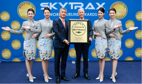 海航航空蝉联“SKYTRAX五星航空”荣誉称号。来源:海南航空
