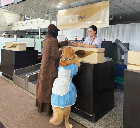 海南航空西安—乌鲁木齐宠物包机航班,携宠旅客办理值机。来源:海南航空