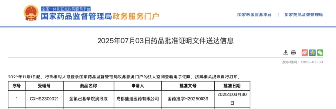 近日,恒瑞医药子公司成都盛迪医药有限公司收到国家药品监督管理局的通知,批准公司全氟己基辛烷滴眼液上市。该产品是用于治疗睑板腺功能障碍相关干眼的药品,将为我国此类患者提供全新的药物治疗选择。