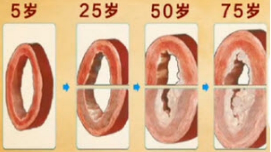当今社会血管老化现象不容忽视,血管老化的实质是动脉粥样硬化形成,出生时血管内皮是光滑干净的 ,随着年龄增长,血液中的脂类会慢慢沉积,使血管弹性下降,血管壁慢慢变厚,血管腔慢慢变窄,每年变窄1%~2%,形成动脉粥样硬化。血管老化的危害非常严重,会导致心绞痛、心肌梗死及脑梗死等恶性疾病,所以防治血管老化刻不容缓。