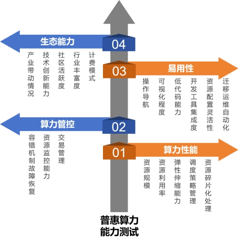 据介绍,中国信通院“普惠算力”能力测试以CTTL-XXFF-2025-0291《普惠算力能力测试方法》为依据,从算力性能、算力管控、易用性、生态能力四大维度进行严苛评估。算力性能聚焦资源利用效率,涵盖资源规模、利用率、弹性伸缩及碎片优化等能力;算力管控围绕监控、安全与交易管理,筑牢算力服务稳定运行基石;易用性强调操作便捷与用户友好,从低代码开发到运维自动化多环节发力;生态能力则关注服务辐射与行业价值,覆盖技术创新、产业带动等维度,多维度为普惠算力发展“画像”。