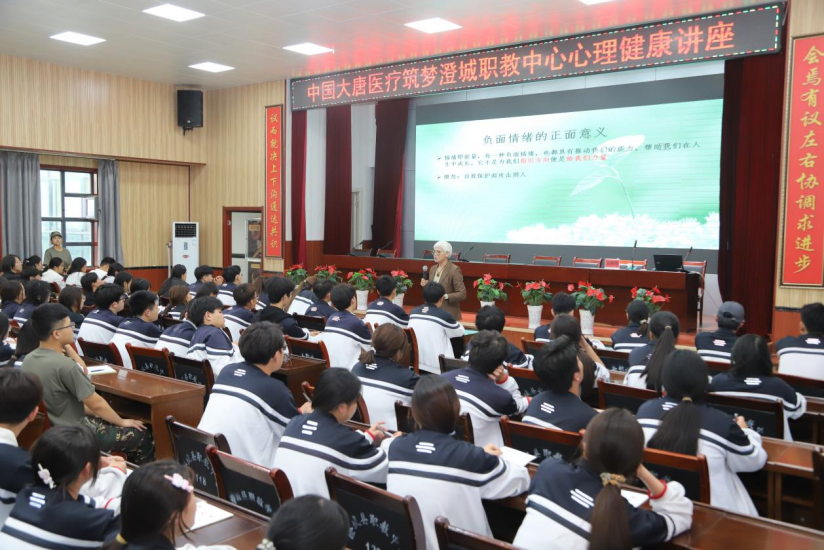 图为心理健康专家走进澄城县职教中心开展心理健康专题讲座。