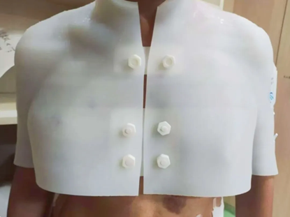 放疗团队基于患者CT图像获取身体外轮廓,创新使用3D打印注胶技术定制个体化硅胶组织补偿物,并配合热塑网膜进行体位固定。补偿物能够紧密贴合皮肤,优化表面剂量,同时保护深层重要组织。