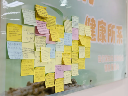 最引人注目的是病区一进门的白墙,如今已成了一片“感谢墙”。五颜六色的便签纸上,有的画着简笔画的笑脸,有的写着娟秀的字迹:“真正做到了让病人和家属放心、安心”“护理安全可靠”。