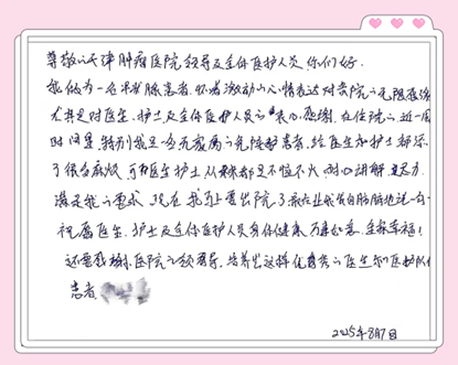 渐渐地,老人开始主动说“今天感觉好多了”“这粥熬得真香”,甚至会跟查房的护士念叨两句窗外的天气。出院那天,护士长将工整手写的出院须知交给张爷爷,反复叮嘱注意事项。张爷爷紧握护士长的手:“你们比亲人还贴心啊,喂药、订餐、检查啥的,比闹钟还准,永远抢在呼叫铃响之前到床边。”一旁的老伴有些哽咽:“真是谢谢你们!这免陪护,解了我们老两口的难!”