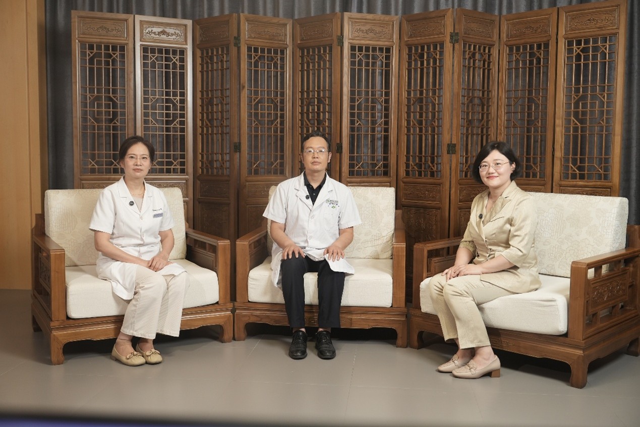 山西省中医院副院长薛晓明(中)以及代谢病科主任吕蕾(左)接受新华网采访