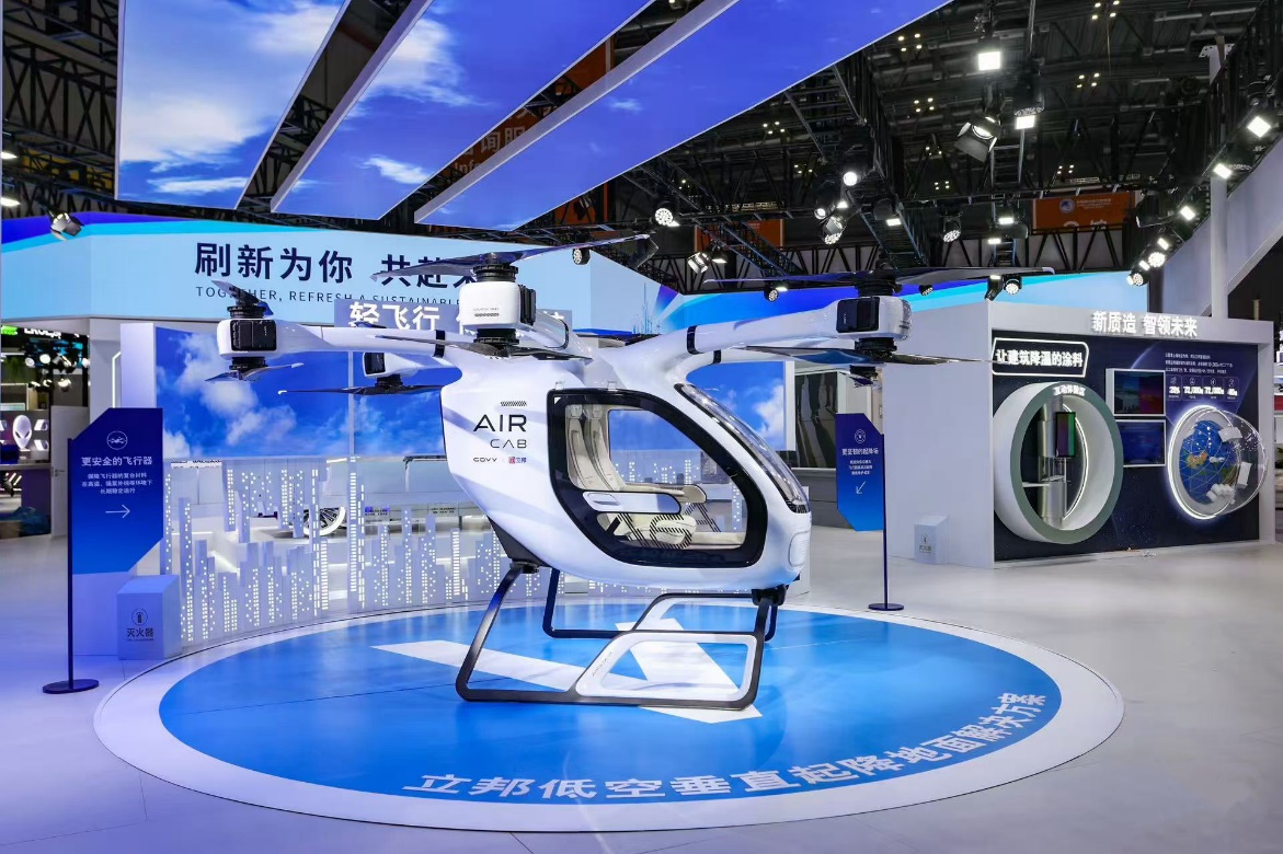 响应国家大力低空经济发展政策,在今年进博会上,立邦全球首发了“立邦低空飞行全域涂装解决方案”。钟中林介绍,“我们早在2021年就开始前瞻布局,这套解决方案的核心聚焦于安全。一方面,为飞行器穿上‘安全外衣’,通过保护机身的复合材料,防止材料变形,抵御高温、紫外线等恶劣环境的侵蚀,以及轻量化,每平米比使用传统航空涂料轻20%;另一方面,为起降场打造‘坚韧地面’,能承受飞行器起飞降落的下洗气流冲击、防滑抗裂、持续耐用降低维护成本。”