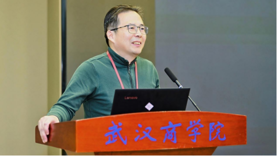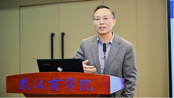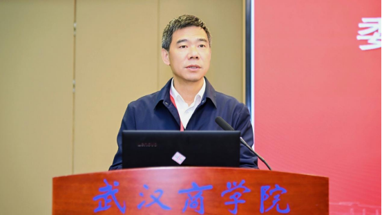 开封职业学院副校长马纪岗作主旨报告。图片来源:武汉商学院