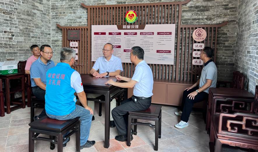 针对社区居委会无祠堂的实际情况,沙湾街将这一模式延伸至榕树下、凉亭中,让“说理”场景更贴近群众生活。如古东村在村民聚集的凉亭打造“说理亭”,延续“主礼员主持、乡贤参与、依法调解”的核心机制;社区居委会则挂牌设立“祠堂说理”工作室,用居民熟悉的“拉家常”方式化解邻里纠纷。这种“形式可变、内核不变”的创新实践,真正实现从“祠堂说理”到“全域说理”的延伸。