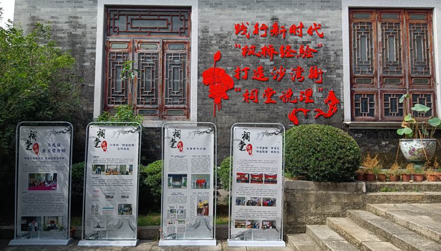变祠堂为“调解工作室”,解纷促自治。沙湾祠堂打造成“调解工作室”,成立街“祠堂说理”工作领导小组,调动“五老一贤”(老党员、老干部、老教师、老知识分子、老政法干警和乡贤)等群众力量,利用村民对祠堂的认可度、敬畏感和归属感,引导群众“有事到祠堂说,有理到祠堂讲,有纠纷到祠堂解”,深化基层自治。