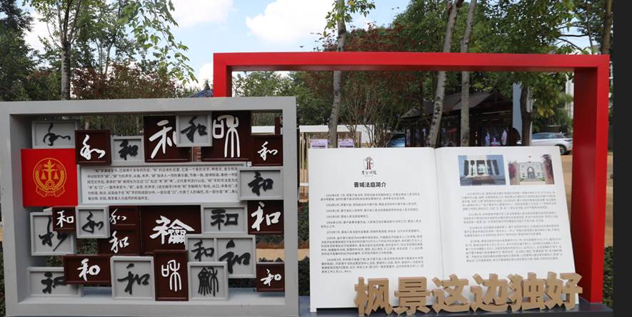 晋城法庭深入挖掘古滇“和合”文化,积极探索多元解纷路径,把“和”文化理念贯穿纠纷解决始终。以“和合”文化为中心精心打造惠“枫”和畅等法庭“六景”及“和合”文化墙;聚焦孝经故事、廉洁文化,打造清风亭、和谐亭、思源井等独具特色的法庭文化,用文化“软实力”助力夯实定分止争“硬支撑”。挂牌成立“鲍卫忠群众工作法调解室”,不断彰显鲍卫忠同志先进事迹和崇高精神。