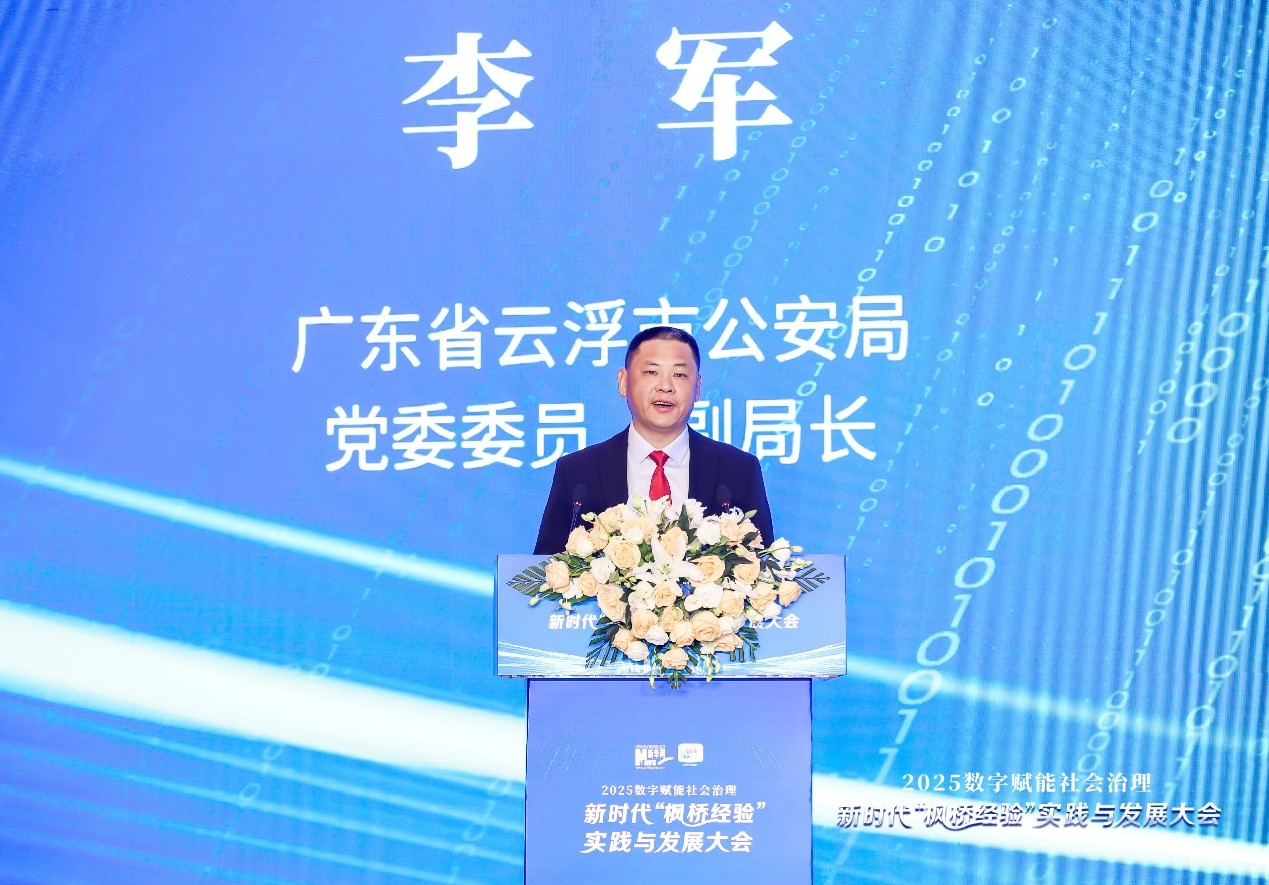 会上,广东省云浮市公安局党委委员、副局长李军围绕“数字赋能驱动警务变革 法治公安筑牢平安基石”的主题,分享了广东省云浮市公安机关数字赋能社会治理的创新实践探索。